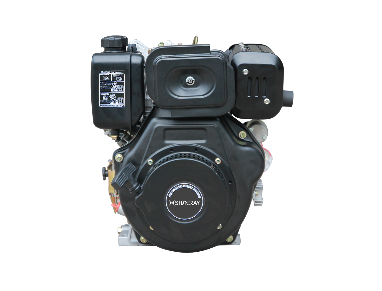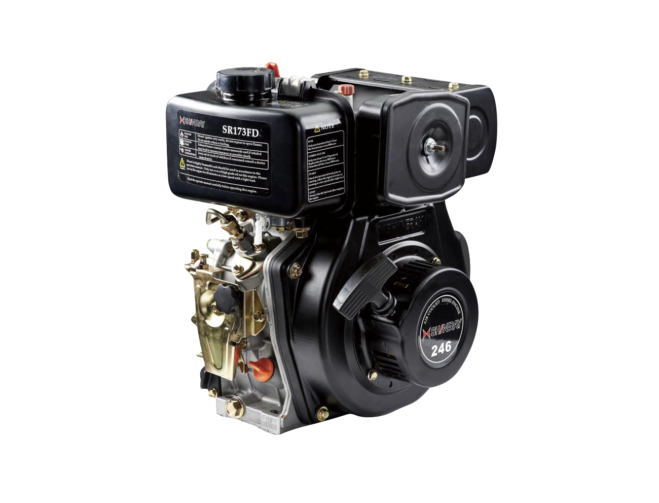 MODE SR188F TYPE Single-cylinder 4-stroke, forced air-cooled, vertical, direct injection CYLINDER BORE ×STROKE(mm) 88×72 DISPLACEMENT(ml) 438 RATED POWER[kw-(r/min)] 6.8/3600 MAXIMUM NET TORQUE 20.2/2800 FUEL CAPACITY(L) 5.5 ROTATE DIRECTION Counterclockwise (facing the output shaft) STARTING SYSTEM Kick start/Electric start L×W×H(mm) 417×441×494 NET WEIGHT(kg) 48